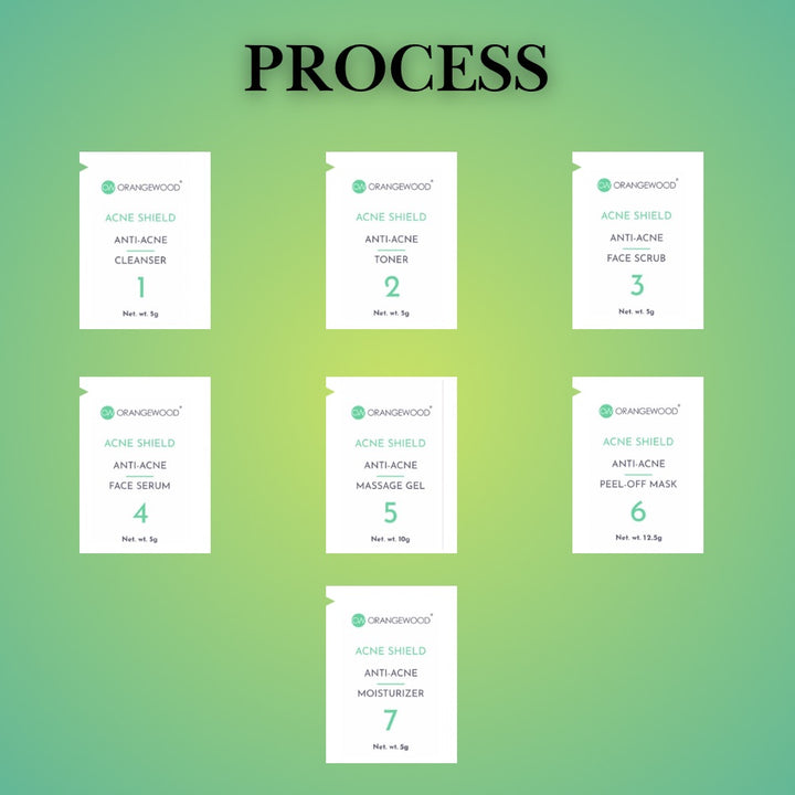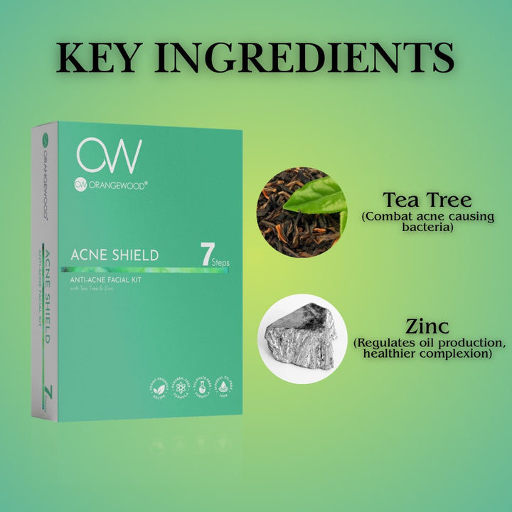 ORANGEWOOD ACNE SHIELD Anti-Acne Facial Kit – 60g | 7-Steps Pimple Control & Oil Balancing Facial | With Neem, Tea Tree & Salicylic Acid | Clears Acne & Prevents Breakouts | Unisex | All Skin Types